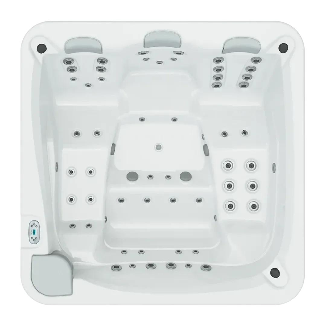 Découvrez le modèle Aquavia Spa Touch 5 , avec des dimensions de 216x216 cm et des parois spa basses (74cm), idéal pour profiter en famille.