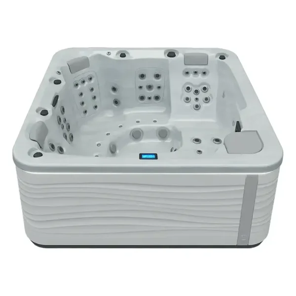 Avec des dimensions de 216 x 216 cm, ce jacuzzi extérieur est conçu pour offrir un confort maximal, intégrant 2 transats et 3 sièges qui permettent une disposition idéale pour 5 personnes.