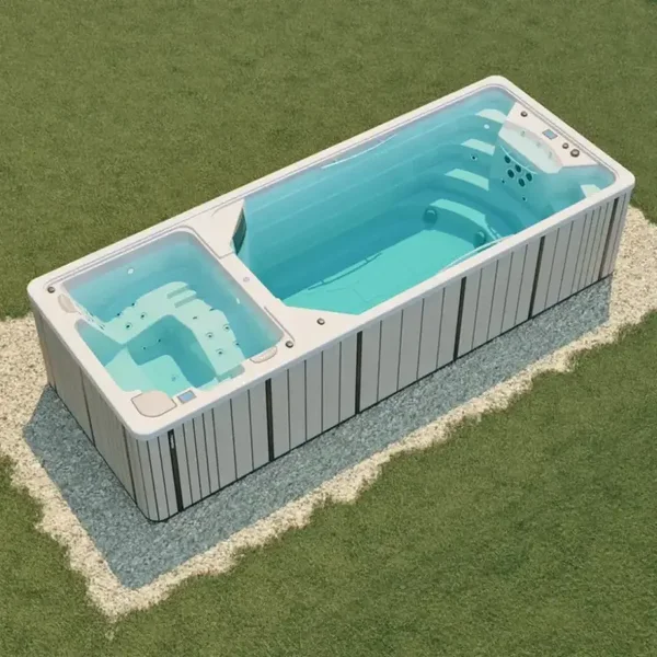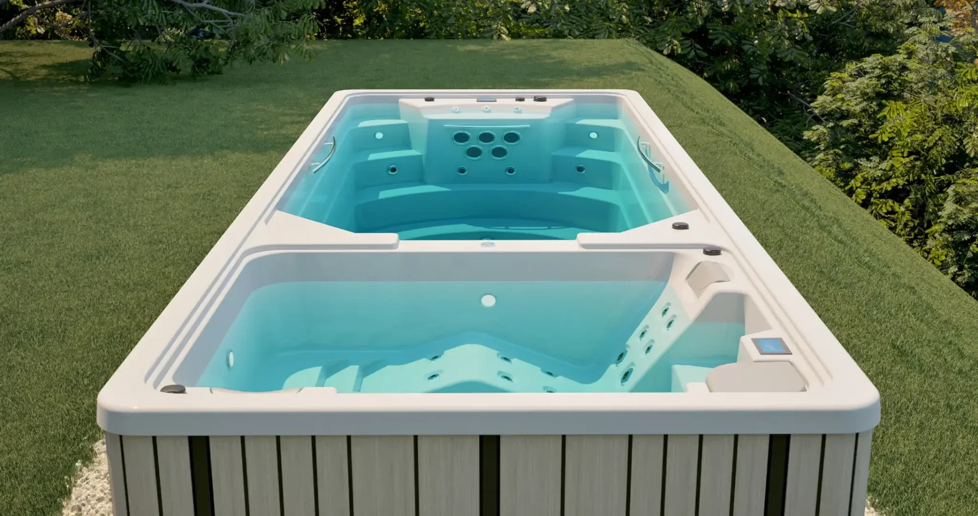 Plongez dans une oasis de bien-être avec le spa de nage Aquavia Spa Duo . Cette piscine innovante avec spa combine deux espaces indépendants : l'un pour profiter de la nage à contre-courant et de l'aquafitness , et l'autre pour s'immerger dans le monde de l'hydromassage .